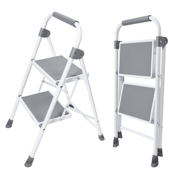 edx 2-Step Folding Step Stool for Adults - 330 Lbs Capacity, Sturdy Steel Frame, Wide Non-Slip Pedal & Top Handrail, Lightweight Portable Ladder for Home Kitchen, Gray $25.99 Was $35.99