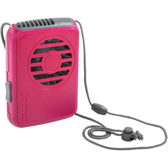 current price $17.99O2COOL 3.5 inch Deluxe Personal Rechargeable Necklace Fan for Cooling, 3 Speed Vertical Air Flow, Pink Raspberry