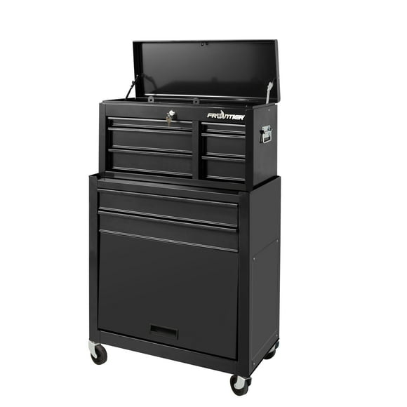 Frontier 24-inch 5 drawer tool chest organizer combo. Includes top and bottom chest