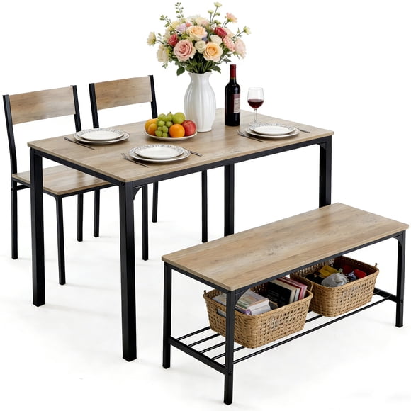 Reduced price edx Dining Table and 2 Chairs for 4, Dining Bench with Metal Frame & Storage Rack, Space-Saving Ideal 4-Person Kitchen Table Set for Dinette, Small Space, Apartment, Restaurant, Gray $124.99 Was $139.99