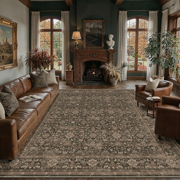 BERTHMEER 8'x10' Area Rugs for Living Room Bedroom Vintage Traditional Rugs Machine Washable Non-slip, Brown