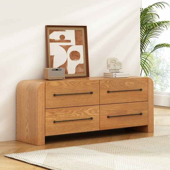 Castle Place Mid-Century 4-Drawer Wooden Dresser, Antique Oak $144.30