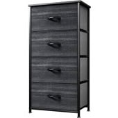 In 100+ people's carts CONCETTA 4 Drawer Dresser, Wide Chest Drawers Nightstand Storage Tower Storage Fabric Dresser With Wood Top for Living Room, Bedroom, Closet, Black $23.99 Was $44.89