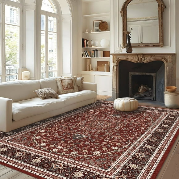 Pentantan 5'x7' Area Rug for Living Room, Red Retro Style Washable Rug with Anti-Slip Backing