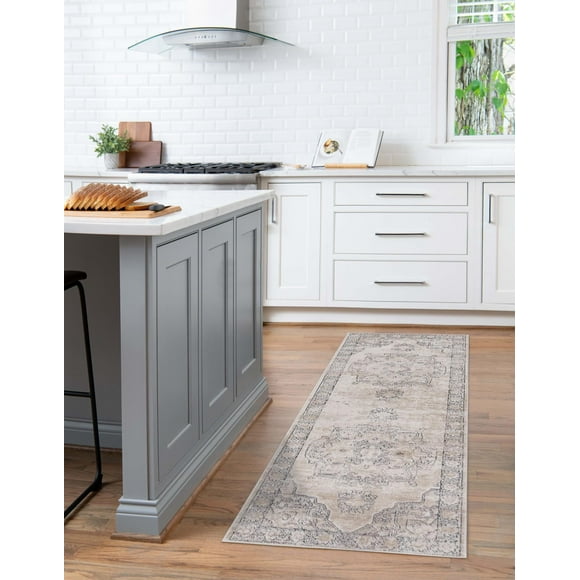 Unique Loom Madeline Vintage Collection Area Rug - Jackson (2' x 9' 10" Runner Gray/Navy Blue)