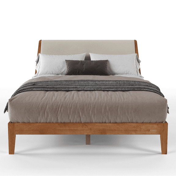 DG Casa Vandermark Queen Bed Frame Solid Wood | Walnut Finish | Easy Install Queen Bed Frame with Unique Headboard and Wooden Slat Support Included | No Box Spring Required - Beige