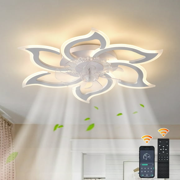 Ganeed Flower Ceiling Fans with Lights and Remote, 24'' Modern Low Profile Flush Mount, Dimmable LED Light Fixture for Bedroom, Kitchen, 50W White $89.90