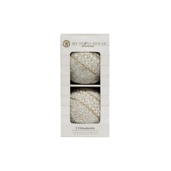 2 Count White Pearl Christmas Ornaments, 4 in, by My Texas House