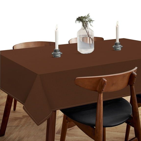 HEIRLOOM COMFORT Brown Cotton Tablecloth, Table Cloth 52x70 Inch, Fits 4-6 Seats, Durable, Washable, Wrinkle Resistant, Rectangle Table Cover for Dining, Fall Gatherings, Rustic Decor, Thanksgiving