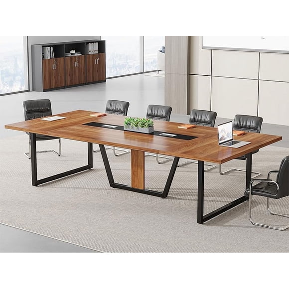 Tribesigns 8FT Large Meeting/Podcast Table, Wooden with Strong Metal Frame, Sits 10, Brown