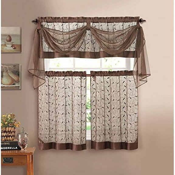 current price $13.99Victoria Classics Linen Leaf 4 Piece Kitchen Curtain Set, 60 x 36 (2 Panels)