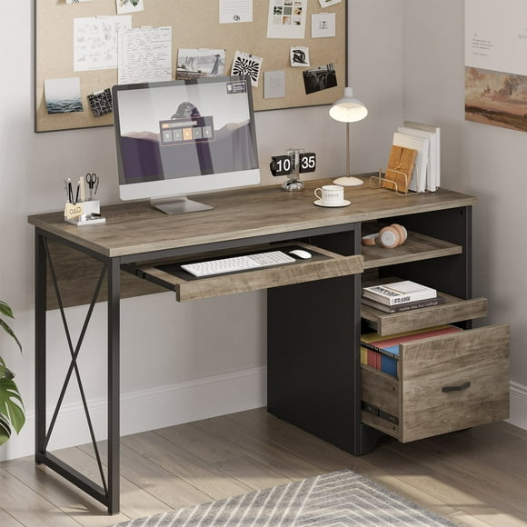 In 25+ people's carts Bestier 47 inch Computer Desk with Storage File Drawer & Keyboard Tray, Home Office Writing Desk Work Study Table for Small Space, Wash Gray $134.99 Was $229.99
