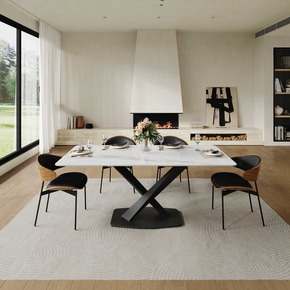 71" Modern Dining Table for 6, White Sintered Stone Dining Tabletop with Black X-Shape Metal Base, Rectangle Dining Table for Kitchen (Table Only) $1,424.00 Was $1,499.00
