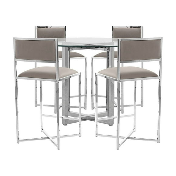 Modus Amalfi 5PC 54" Round Counter Glass Tbl & 4 X-Base Stool Set-Taupe $2,945.00