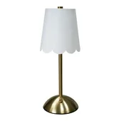 current price $14.97Home Decor Collection Sterling & Noble Home Tabletop LED Touch Lamp with Scalloped White Fabric Shade and Gold Metal Bow Accent