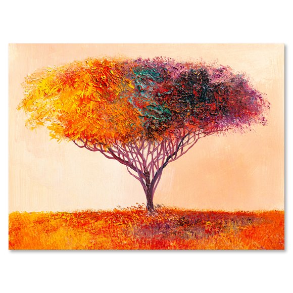 Designart ' Impressionist Landscape Colorful Abstract Tree ' Modern Canvas Wall Art Print