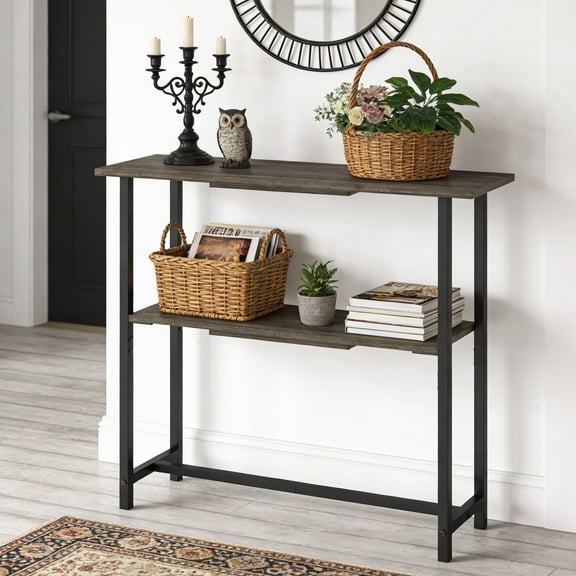 Manora Narrow Console Table, 2-Tier Entryway Table Sofa Table for Living Room, Charcoal Gray