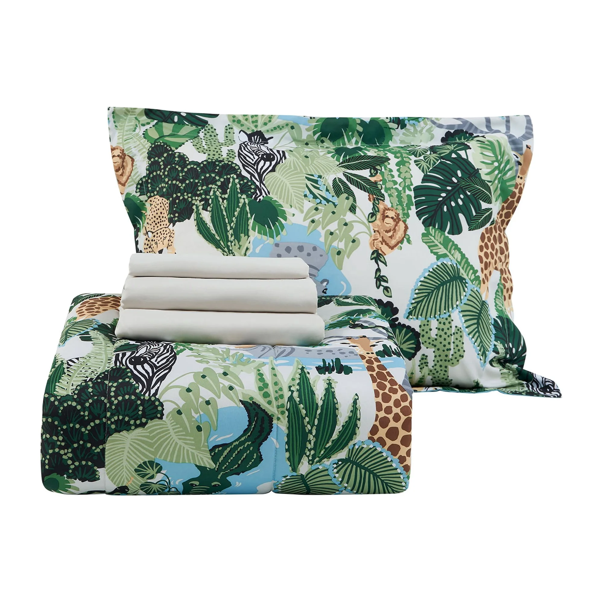 Cartoon Camel Twin Bedding Sets Desert Wildlife Comforter Set, Spring Plant Bedding Comforter Sets Eucalyptus Leaf Duvet Insert, Animal Theme Down Comforter Room Decor