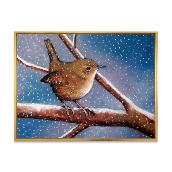 Designart 'Wren Bird On Branch In Winter' Farmhouse Framed Canvas Wall Art Print