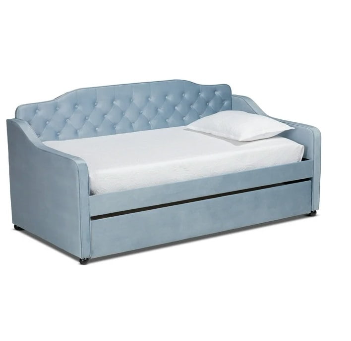 Baxton Studio Freda Transitional and Contemporary Light Blue Velvet Upholstered and Button Tufted Twin Size Daybed with Trundle $531.66