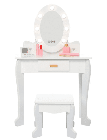 current price $79.99Emorefun Kids Makeup Dressing Table With Lights & Wood Makeup PlaysetGirls' Vanity Set With Mirror and DrawerPink