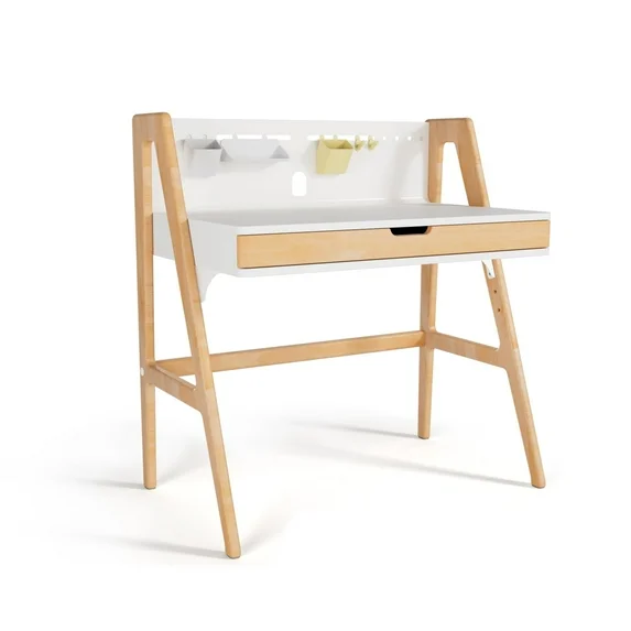 Kadyn Princess Makeup Table with Cushioned Stool, Vanity Desk with Mirror and Drawers, Bedroom Wood Dressing Table for Kids, White