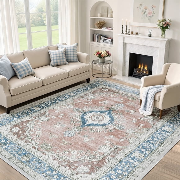 8'x10' Area Rugs for Living Room Washable, Large Vintage Boho Non Slip Rug- Oriental Traditional Farmhouse Carpet for Bedrooms Dining Room, Living Room, Office, Home Decor $69.99