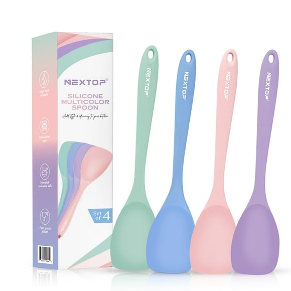 current price $14.95Nextop Silicone Spoon Spatula Set of 4 - Heat Resistant Non-Stick Rubber Spoonula, Seamless Silicone Kitchen Scraper Utensil - Mixing, Baking & Cooking Scrapers