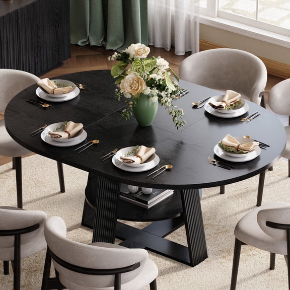 iPormis 59'' Extendable Round Dining Table for 4 to 8, Kitchen Table with Sturdy X-Base Metal Legs, MDF Board , Space Saving, Easy Assembly,Black $195.99 Was $272.97