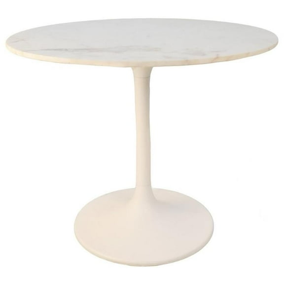 Pemberly Row 36" Round Marble Top Dining Table White Top/White Base