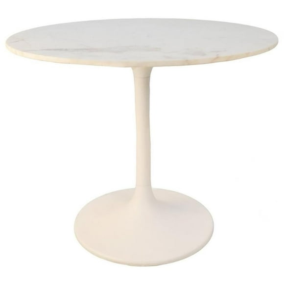 Pemberly Row 36" Round Marble Top Dining Table White Top/White Base $704.63
