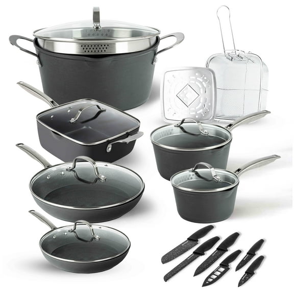 Granitestone Armor Max 20 Pc Hard Anodized Pots and Pans Set Non Stick, Induction Cookware Sets, Anodized Cookware Sets, Nonstick Cookware Set with Knife Set and Deep Fryer, Oven & Dishwasher Safe