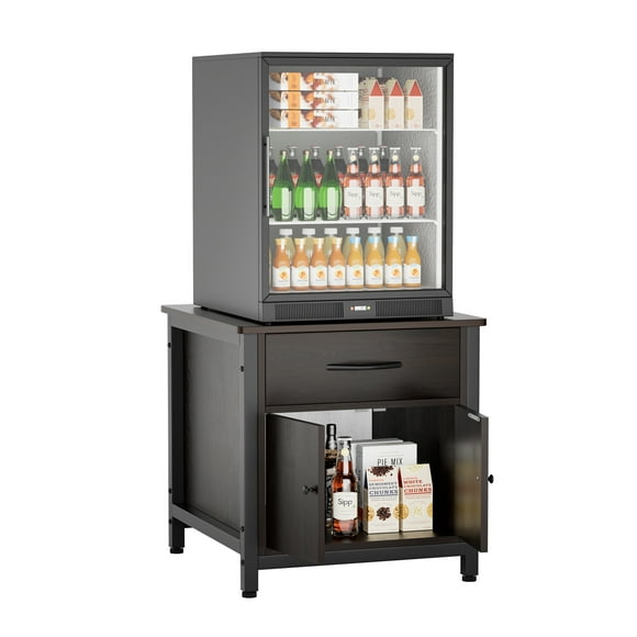 INFANZIA Mini Fridge Stand with Storage, Heavy Duty Mini Fridge Cabinet with Drawer, Solid Wood Beverage Refrigerator Stand Table for Dorm, Office, Bedroom, Load 220LBS, Black $104.99