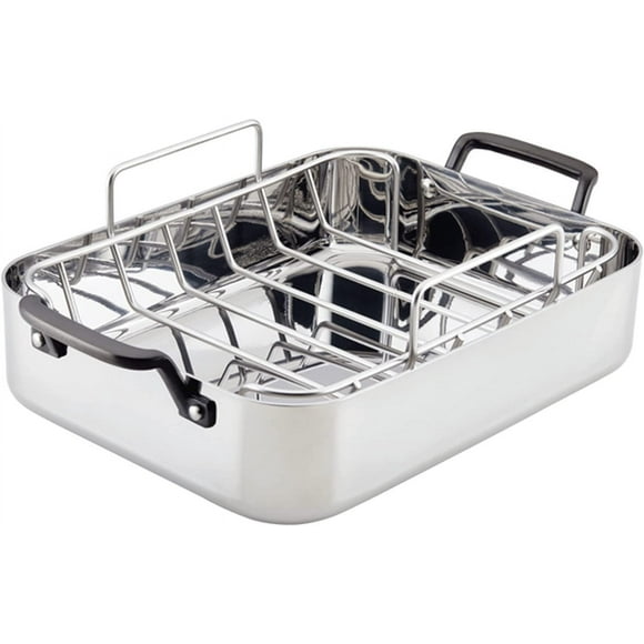 5-Ply Clad Stainless Steel Roasting Pan/Roaster with Removable Rack, 15 Inch x 11.5 Inch - Polished Stainless Steel $197.99