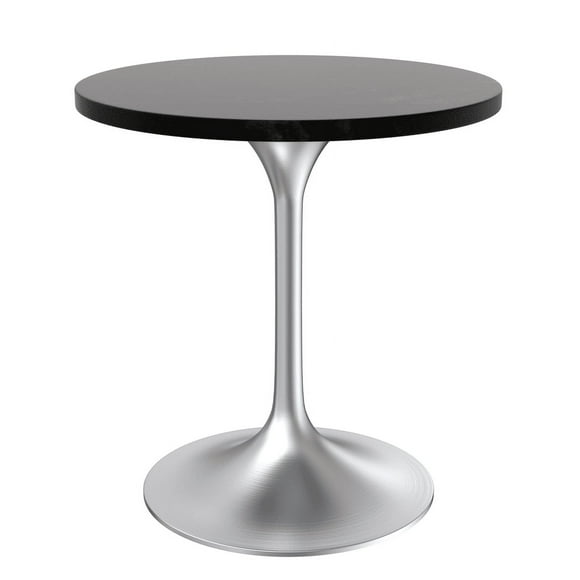 LeisureMod Verve 27" Round Dining Table, Mid-Century Modern MDF Top Dining Table with Silver Stainless Steel Pedestal Table Base for Kitchen and Dining Room, Black