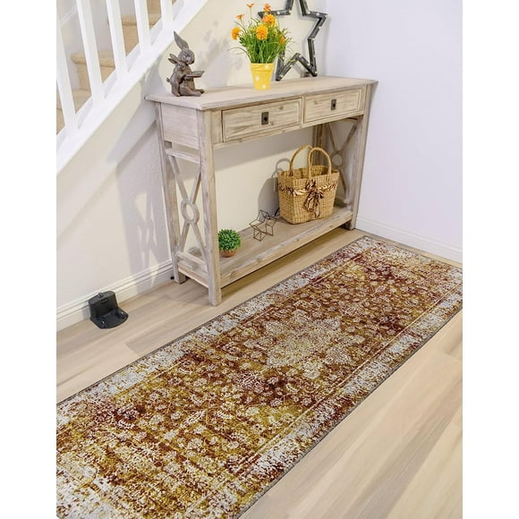 Gloria - Door mat Washable Rug Runner Low Profile Persian Washable Rugs Non Slip Rugs for Living Room Light Weight Outdoor Mat $29.99