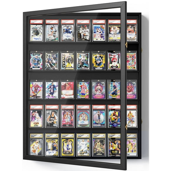 Card Display Case, 35 Graded Sports Display Frame with UV Protection Clear View Lockable for Football Baseball Basketball Hockey Comic Trading Cards,Black $49.99 Was $69.99