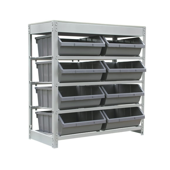 King's Rack Bin Rack Boltless Steel Storage System Organizer w/ 8 Plastic Bins in 4 tiers