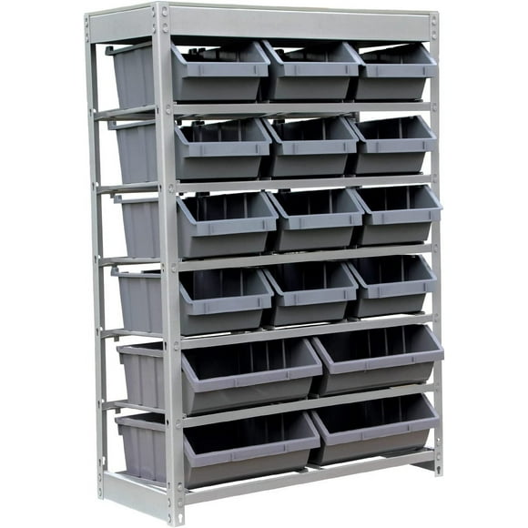 King's Rack Bin Rack Storage System Heavy Duty Steel Rack Organizer Shelving Unit w/ 16 Plastic Bins in 6 tiers $338.95 Was $360.99