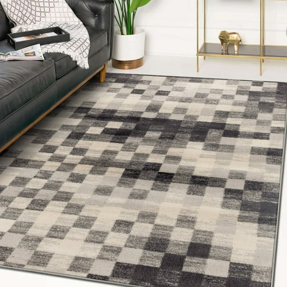Luxe Weavers Checkered Area Rug Silver 5x7, Stain Resistant Modern Farmhouse Rug $90.00