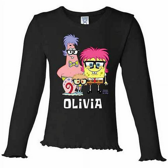 Personalized SpongeBob SquarePants Wigs Toddler Girl's Black Ruffle Long Sleeve Tee $19.98