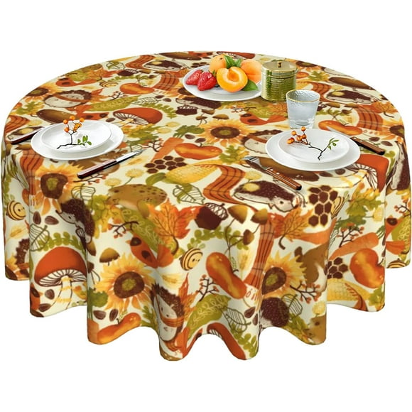 Autumn Tablecloth Fall Round Tablecloth 60 Inch Washable Reusable Harvest Tablecloth for Home Parties Dinner Picnic Dining Kitchen Decor