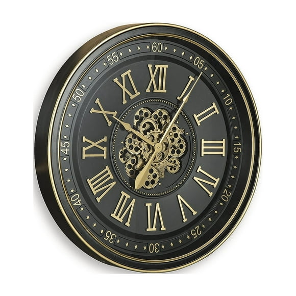 Signature Design by Ashley Dairton Wall Clock, Black & Gold Finish, Industrial Gear Design, Roman Numerals, 32-Inch Round $204.99