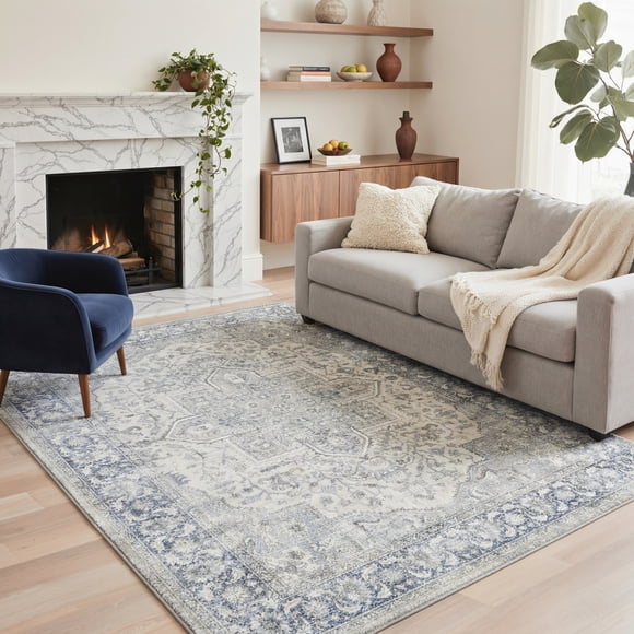 5x7 Washable Rugs for Living Room Non Slip Low Pile Lightweight Area Rugs, Machine Washable Indoor Rugs for Bedroom Dining Room Home Office, Medallion Pattern Ash Blue $49.99