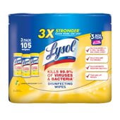 Lysol Disinfectant Wipes, Multi-Surface Antibacterial Cleaning Wipes, For Disinfecting and Cleaning, Lemon and Lime Blossom, 105 Count (Pack of 3)