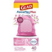 Glad ForceFlexPlus 13 Gallon Tall Kitchen Trash Bags, Cherry Blossom with Febreze, 40 Bags $10.98 27.5 ¢/count