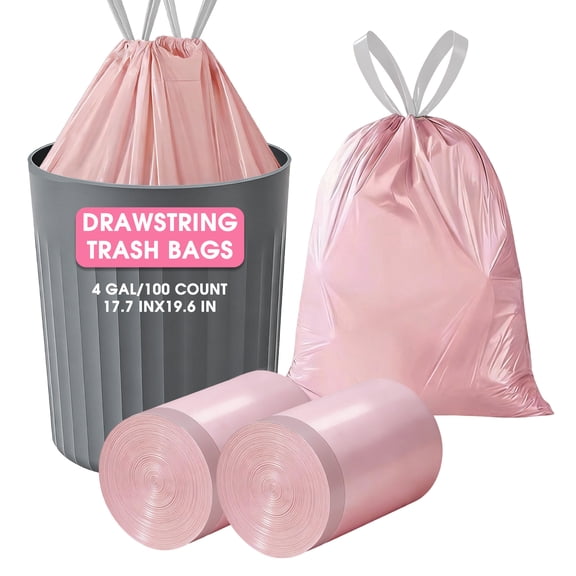 4 Gallon Trash Bags, Small Trash Bags with Drawstring, Unscented Garbage Bags for Bathroom kitchen Office, 100 Count, Pink $9.18