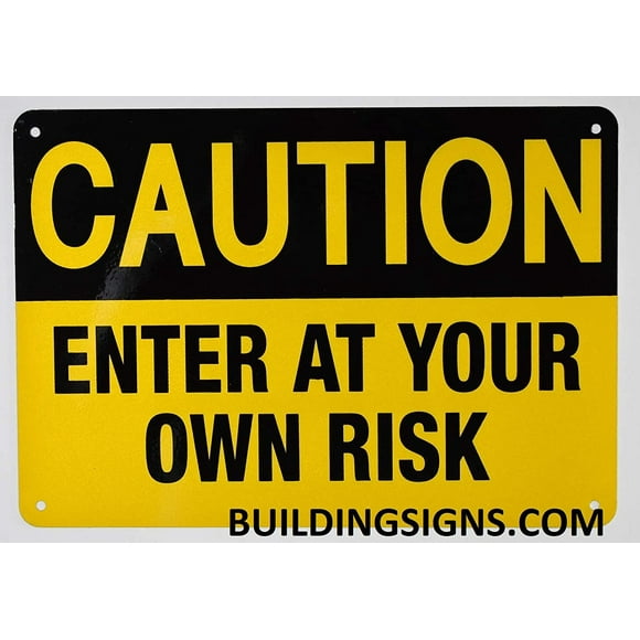Caution Enter at Your OWN Risk Sign (Reflective!,Aluminium,Yellow Background, 7X10 inch)(ref-2022-4) $10.99