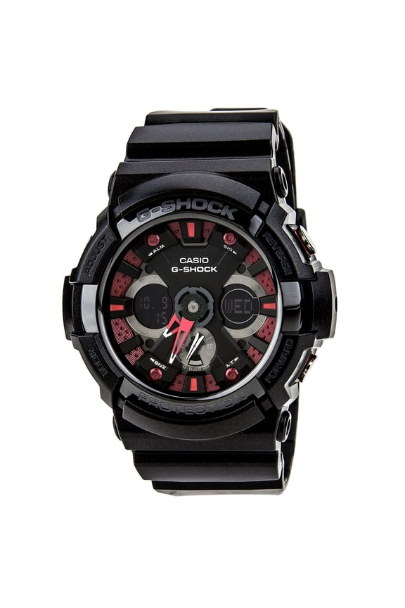 GA200SH-1A Men's G-Shock Black & Red Ana-Digi Dial Black Metallic Resin World Time Dive Watch