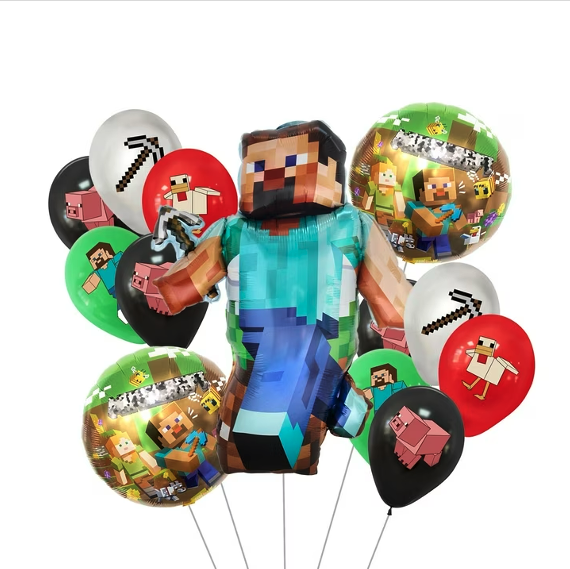 current price $13.996 PCS Pixel Mining Balloons Pixel Style Gamer Party Supplies Minecraft Balloons Birthday Party Balloons